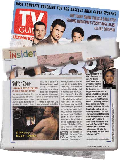 SUFFERER was described as "A Satire Success Story" -- TV GUIDE (October 7, 2000),